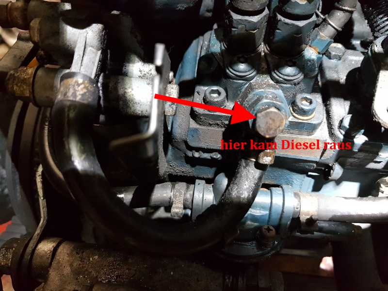 DA, wo bei Dir Diesel rauskam, das ist die Entlüftungsschraube. DA ist auch die mechanische Dieselpumpe.