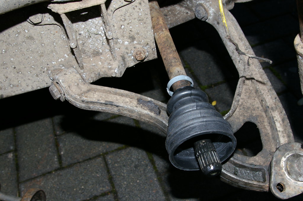 Jetzt halt alles in umgedrehter Reihenfolge. Gelenk auf die Welle schieben bis der Sicherungsring hörbar einrastet.